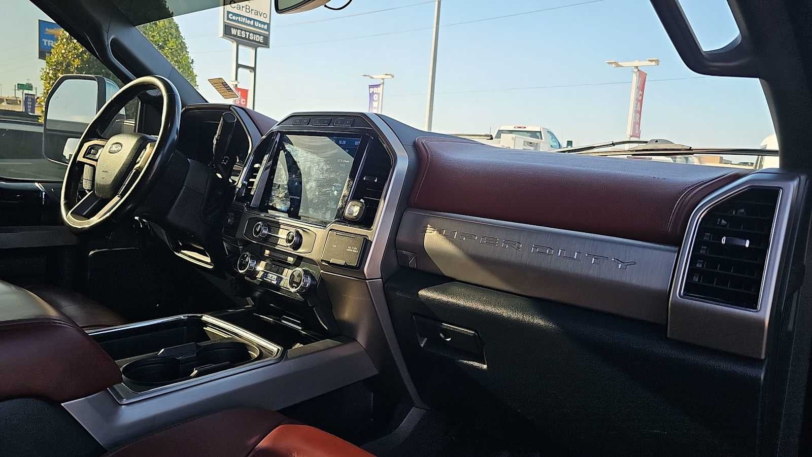 ENGINE: 6.7L 4V OHV POWER STROKE V8 TURBO DIESEL B20: manual push-button engine-exhaust braking and intelligent oil-life monitor, 48 Gallon Fuel Tank, 240 Amp Alternator (67D), GVWR: 12,400 lb Payload Package, 3.31 Axle Ratio, Dual 78-AH 750 CCA Batteries, ELECTRONIC-LOCKING W/3.55 AXLE RATIO, GOOSENECK HITCH KIT (PRE-INSTALLED), TRANSMISSION: TORQSHIFT 10-SPEED AUTOMATIC SelectShift and selectable drive modes: normal, tow/haul, eco, deep sand/snow and slippery (STD). Ford Platinum with Agate Black exterior and Black/Dark Marsala interior features a 8 Cylinder Engine with 475 HP at 2600 RPM*. Non-Smoker vehicle