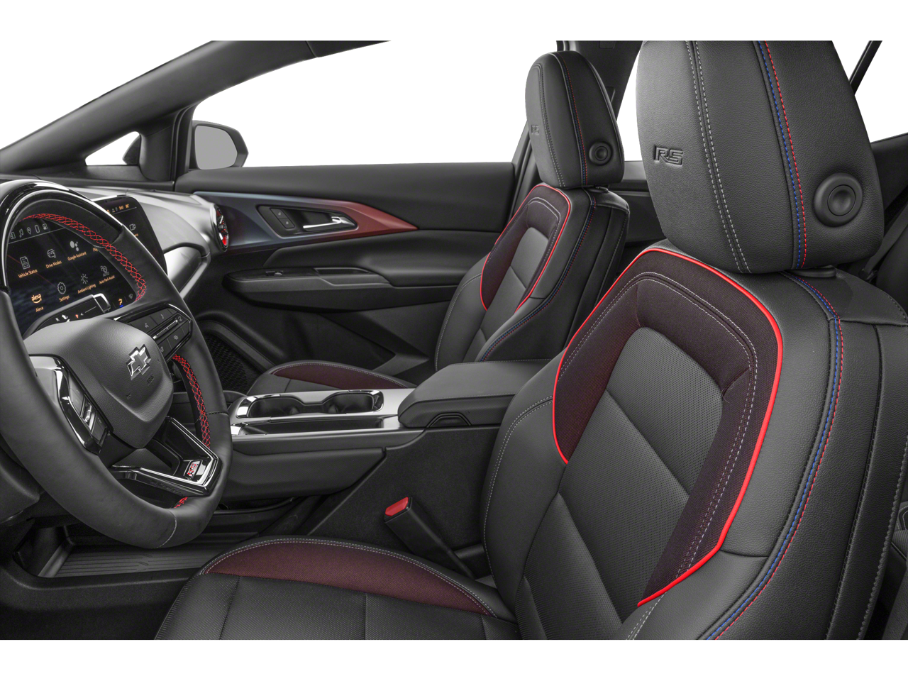 TRANSMISSION, NONE (ELECTRIC DRIVE UNIT) (STD). Chevrolet RS with Black exterior and Black with Red Accents interior features a Electric Motor. Non-Smoker vehicle